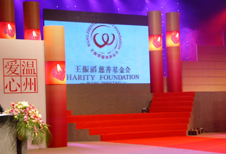 奧康集團(tuán)董事長(zhǎng)兼總裁王振滔多年來熱心公益事業(yè),其公司已累計(jì)向社會(huì)捐資1億多元。并于2007年4月成立中國(guó)民營(yíng)企業(yè)家中第一個(gè)個(gè)人非公募慈善基金會(huì)——王振滔慈善基金會(huì),在助學(xué)、扶貧等方面做出突出貢獻(xiàn)。曾獲得“中華慈善大使”、“國(guó)際慈善名人獎(jiǎng)”、“中國(guó)慈善特別貢獻(xiàn)獎(jiǎng)”等多項(xiàng)榮譽(yù)。在此次頒獎(jiǎng)晚會(huì)上被授予溫州“十大慈善家”榮譽(yù)。