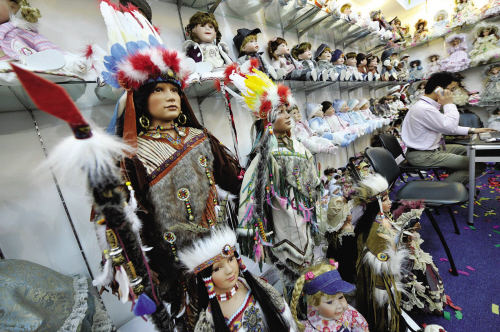 ■ 一家玩具企業(yè)在第103屆廣交會上展示新設(shè)計(jì)的印第安娃娃 新華社 圖