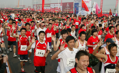 【中國鞋網】 2009年4月5日,中原歷史名城鄭州和宋都汴梁用他們歷經千年的文明共同見證了“第三屆鄭開國際馬拉松的勝利舉行。在兩座古都里歷史與現代文明交織匯映著演繹了現代的傳奇。