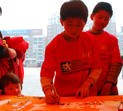 361°從2009年起正式成為鄭開國際馬拉松的全球頂級合作伙伴,本次賽事是361°首次攜手鄭開國際馬拉松,為此361°積極響應組委會“祖國萬歲 愛心馬拉松”的主題,組建了自己的企業方陣,為祖國60歲生日獻上自己最誠摯的祝福!不僅在鄭州和開封2個賽場設立了愛心義賣外,還合騰訊拍拍、淘寶網展開“多一度熱愛”愛心義賣活動.義賣所得將全部捐贈給河南省慈善總會。