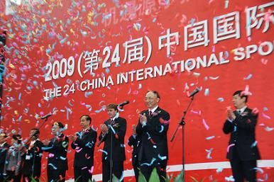【中國鞋網】由國家體育總局、中華全國體育總會、中國奧林匹克委員會、中國體育用品聯合會、中國體育科學學會主辦,國家體育總局體育器材裝備中心、華興體育用品發展中心承辦的2009(第24屆)中國國際體育用品博覽會于4月23日在北京新國際展覽中心盛裝亮相。國家體育總局局長劉鵬、國家體育總局副局長王鈞、以及商務部、審計署、國家工商行政管理總局、國家質量監督檢驗檢疫總局、國家知識產權局、國家標準化管理委員會、國家認證認可監督管理委員會等相關部委的領導出席了開幕儀式。出席開幕式的嘉賓還包括世界體育用品聯合會秘書長、日本和韓國體育用品相關協會官員以及美國、法國、意大利、尼日利亞、荷蘭等國家駐華使館的代表。開幕式由國家體育總局體育器材裝備中心主任、中國體育用品聯合會秘書長馬繼龍主持。