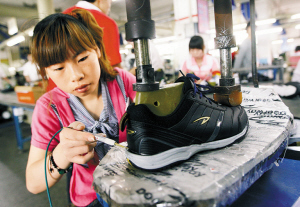 德爾惠鞋廠,工人馬不停蹄地制鞋