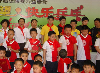 為了能夠使乒乓球運(yùn)動(dòng)更加貼近大眾,讓乒超聯(lián)賽逐漸走進(jìn)千家萬(wàn)戶,樹立聯(lián)賽愛(ài)心、快樂(lè)、運(yùn)動(dòng)健康的社會(huì)形象,聯(lián)賽伊始,361°便攜手乒羽中心與中國(guó)乒超聯(lián)賽運(yùn)動(dòng)員一同走入群眾,開展了以“和諧希望,快樂(lè)乒乓”為主題的乒超大課堂活動(dòng),活動(dòng)期間,不僅安排運(yùn)動(dòng)員擔(dān)任班主任,親自指導(dǎo)班級(jí)同學(xué)乒乓球技術(shù),還與社區(qū)居民一起共同歡度端午佳節(jié)。新賽季開幕儀式上,身著361°的助威方陣中,有兒童、老人、青年,用方陣拼字的方式,為聯(lián)賽送去了美好的祝福。