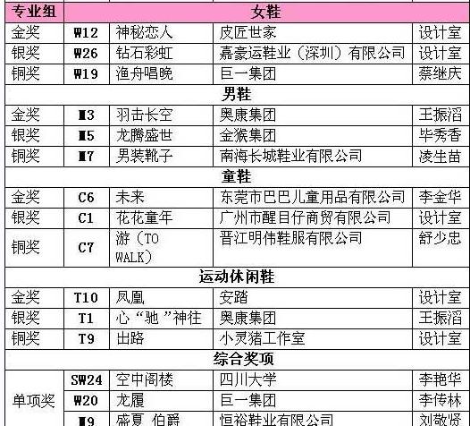 本次大賽評比分個人組和專業組,在經過3月份緊張的初賽效果圖角逐后,共有125件作品入圍,并進入決賽,其中個人組48件作品,專業組77件作品。參賽類別包括:男、女鞋、童鞋和運動休閑鞋四大類。本次大賽中共產生了個人組與專業組獎項25項。分別為:個人組10項,其中男鞋、女鞋、童鞋三類作品產生了金銀銅獎各1名,運動休閑類作品金、銀兩個獎項空缺;專業組12項,四類參賽作品分別產生了金銀銅獎各1名;綜合獎項3名。本次大賽所有獲獎作品已經全部報送至2009國際鞋類設計大賽組委會。