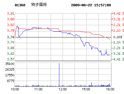 3.64 -0.10 -2.67% 2009-06-22 15:58:30 |