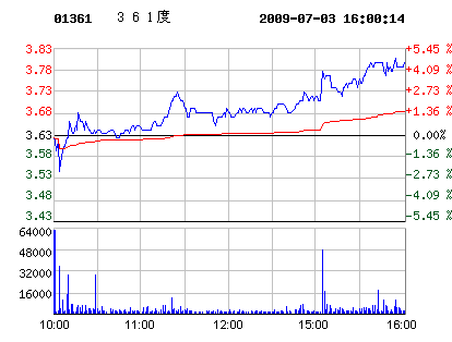 鞋企股價:361度7月03日股票行情走勢