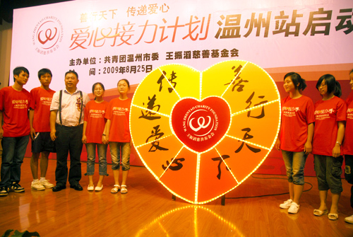 據悉,自王振滔慈善基金會2007年成立以來,“愛心接力”活動已在全國開展了十站,共資助大學生2000多名,已發放助學金600多萬,2009年已于8月18日、20日分別在安徽滁州和浙江永嘉啟動,今日再回溫州,下個月初又將在湖北黃岡播撒愛心種子,屆時,“愛心接力計劃”所開展的活動將達到11站。