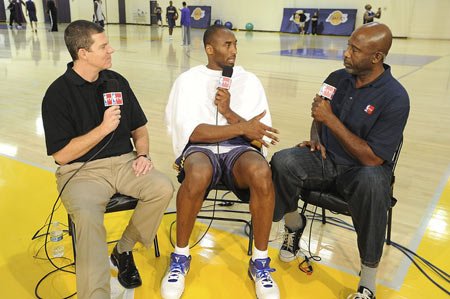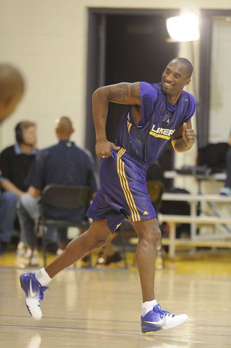 中國鞋網10月05日訊 北京時間10月2日,科比參加了季前賽開始后湖人隊的首日訓練。在訓練中,科比腳上的鞋款還是上個賽季伴隨他奪冠的Zoom Kobe IV。鞋雖是“老鞋”,但卻是一個全新的配色。這款由白色過度到紫色的漸變配色ZK4,讓湖人隊其他穿著科比四代的“山寨”代言人們頓時失色不少,比如不入流的鮑威爾,腳下還穿著季后賽配色的ZK4。