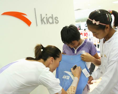 10月4日,剛剛在中網前一站比賽--泛太平洋公開賽上獲得亞軍的揚科維奇來到北京。作為本屆中網的衛冕冠軍,揚科維奇在中國球迷之中人緣極好,剛下飛機就被"粉絲"圍住。稍作安頓,揚科維奇便在自己的贊助商安踏的配合下,來到安踏兒童店與球迷展開互動。