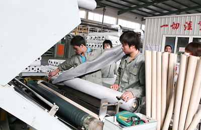 圖為昊明人造皮革有限公司PVC人造革生產車間。