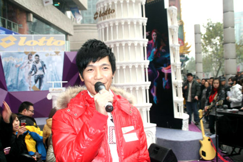 當(dāng)一身紅色羽絨衣的陳楚生于下午2點(diǎn)現(xiàn)身在活動(dòng)現(xiàn)場時(shí),氣氛達(dá)到了高潮。在“花生們”的歡呼與尖叫聲中,陳楚生即興在活動(dòng)現(xiàn)場為大家演唱了《一個(gè)人唱情歌》,這也是楚生最新專輯《冬去春來》的主打歌。楚生安靜溫暖的聲音為原本時(shí)尚性感的現(xiàn)場氛圍增添了溫馨的氣息。為答謝現(xiàn)場近千名消費(fèi)者對Lotto品牌的關(guān)注和支持,陳楚生與在場的消費(fèi)者們進(jìn)行了互動(dòng)問答,并送上了由他親手簽名的Lotto品牌T恤衫陳楚生表示,自己是Lotto的老朋友了,“我在2004年買的第一雙皮質(zhì)足球鞋就是Lotto的。”