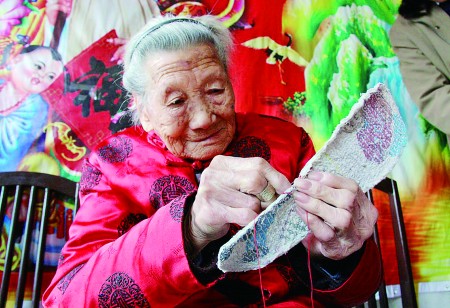 由于劉興蕓老人的子孫眾多,平時來看望她的人也是絡繹不絕,但孩子們的鞋號劉興蕓老人卻記得非常清楚,平時就不停地納鞋墊,看見誰就送誰一雙。劉興蕓老人的侄子李玉海告訴記者,他穿的就是老人親手納的鞋墊,而他的親戚也都基本上穿著老人送的鞋墊。“你們看看鞋墊合適吧,一人拿一雙,別嫌棄啊。”劉興蕓拿起納好的鞋墊說。