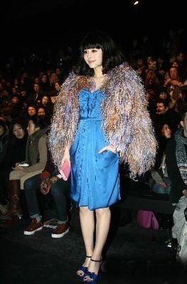 中國鞋網3月9日訊,日前,范冰冰低胸禮裙加毛毛外套搭配綠色高跟鞋出席巴黎舉行的2010秋冬時裝秀,裝扮潮流,吸引了不少法國傳媒拍照。