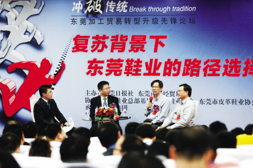中國鞋網03月20日訊,昨日下午,由東莞日報社與市外經貿局聯合主辦的“沖破傳統——東莞加工貿易轉型升級先鋒論壇”首場鞋業專場在華堅集團內舉行。