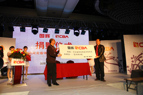 國輝(中國)有限公司副總裁林金章向河北體育局捐贈籃球基礎設施