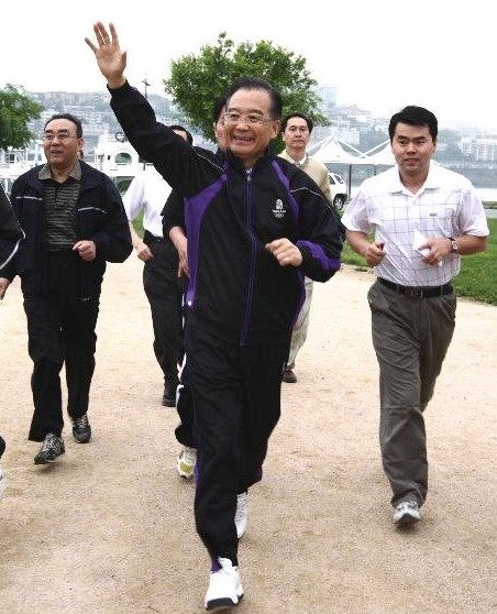 中國鞋網5月29日訊,中國總理溫家寶29日開始他在韓國第二天的訪問行程。有晨練習慣的他一大早便來到首爾漢江公園跑步。6時15分許,溫家寶來到漢江邊,他身著一套帶有北京奧運標志的運動服,繞著江邊的一塊草坪開始跑步。一些正在這里鍛煉的首爾市民認出了溫家寶,走過來向溫家寶問好。