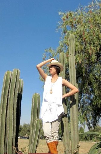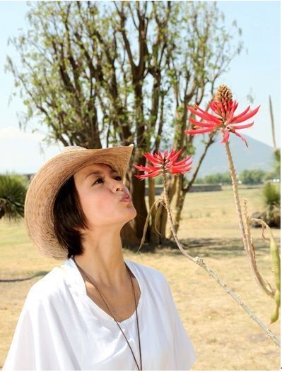 梁詠琪與墨西哥仙人掌合影