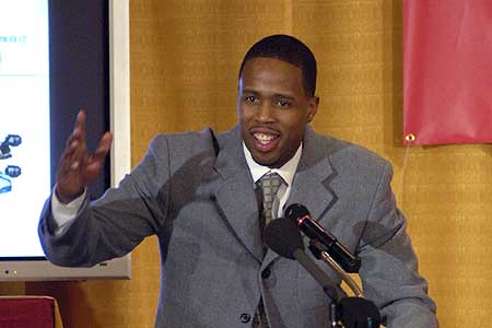 面對著熱情的中國媒體,達蒙•瓊斯在大洋彼岸通過連線告訴大家:“李寧公司是一家令人尊敬的 公司,從創立之初到現在的表現都很出色,李寧牌具有東方特色的產品,讓我在賽場上與眾不同,希望能通過這次合作,讓更多的中國喜愛籃球的青少年朋友們深入認識NBA,深入認識李寧牌的專業籃球產品。”