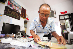 昨天上午,回到謝邊村后,秋叔卸下裝備——一個小小的軍綠色背包,還有那雙補了10多次鞋底的解放鞋。盡管跑了35天,但他絲毫不覺疲憊,精神亢奮,手舞足蹈地向記者描述起長跑的經(jīng)歷來。