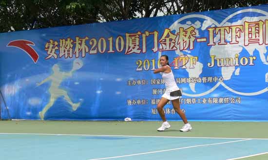 中國鞋網(wǎng)9月24日訊, 2010年9月21日,由安踏支持,中國網(wǎng)球協(xié)會舉辦的“安踏杯”2010廈門金橋-ITF國際青少年網(wǎng)球巡回賽正式開打。來自10余個國家的100多名網(wǎng)球小將云集于廈門體育中心,一較高下。該賽事代表國際青少年網(wǎng)球發(fā)展的最高水平,為世界網(wǎng)壇的未來之星們架起了通往網(wǎng)壇巔峰的橋梁。