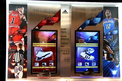 在阿迪達斯上海國金中心店,消費者可以通過互動屏幕了解產品科技信息以及時尚流行趨勢