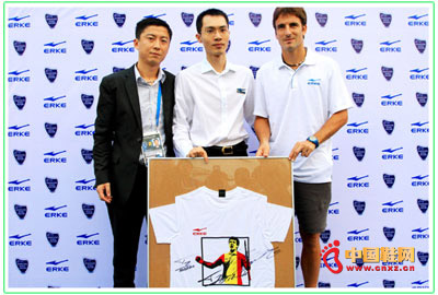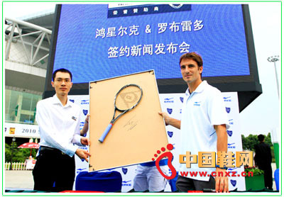 中國鞋網(wǎng)10月13日訊,中國網(wǎng)球第一品牌鴻星爾克集團(ERKE GROUP)再度發(fā)力,繼“鴻星爾克杯”上海大師賽球童招募活動后,近日正式簽約西班牙網(wǎng)球明星羅布雷多為代言人。簽約儀式現(xiàn)場,雙方在各界嘉賓、球迷及媒體的共同見證下互贈禮物,一件以羅布雷多為主題的文化紀念衫首度登場,作為回饋,羅布雷多也將親筆簽名的網(wǎng)球拍慷慨相贈,可見雙方之間的精誠合作之意。