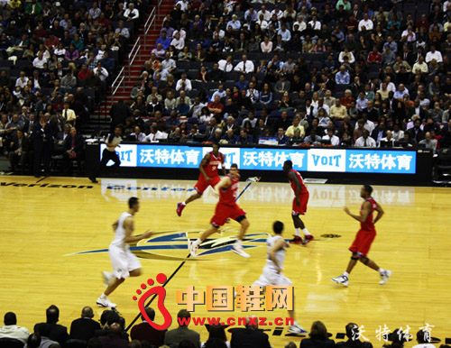 【中國鞋網(wǎng)—品牌動態(tài)】2010年11月7日, NBA常規(guī)賽火箭隊與馬刺隊正在火熱進行中。通過沃特一直以來的合作伙伴CCTV5進行直播,很多細心的中國NBA球迷發(fā)現(xiàn):籃球場上出現(xiàn)了巨幅中文字“沃特體育”以及VOIT標(biāo)識的廣告。不僅如此,在近日國內(nèi)直播的奇才隊主場里,也出現(xiàn)了沃特的元素以及場內(nèi)廣告。這也是誕生于中國海峽西岸的,國內(nèi)專業(yè)街頭籃球品牌首次亮相NBA賽場。