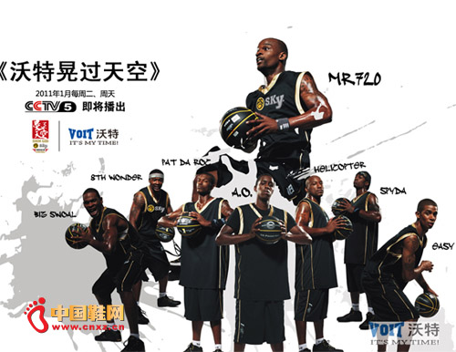 【中國鞋網(wǎng)-鞋業(yè)品牌新聞】 從1月4日開始,由沃特集團、中央電視臺體育頻道以及上海晃動體育文化傳播有限公司聯(lián)合打造的2011年開年大戲——《沃特晃過天空》在中國最強勢體育電視平臺CCTV5震撼上演。此專題片為中國電視史上第一檔以街頭籃球為主題的電視真人秀節(jié)目,旨在打造成為中國街頭籃球愛好者的圣經(jīng),堪比美國當(dāng)年那套讓全世界街球迷們都趨之若鶩、為之瘋狂的And1 Mixtape系列DVD。