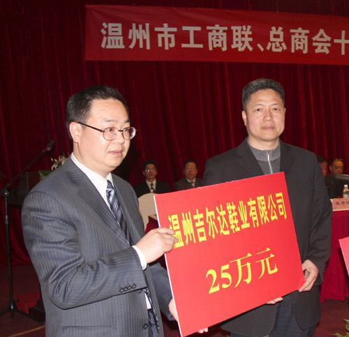 溫州市慈善總會工商聯(lián)分會的成立旨在整合行業(yè)商會、廣大非公有制經(jīng)濟人士等的力量,籌募愛心慈善基金,開展社會救助,輔助弱勢群體。作為溫州市工商聯(lián)副主席的吉爾達公司董事長余進華,慷慨解囊,踴躍向分會捐贈25萬元善款,以推動扶貧濟困、賑災救助、公益宣傳等工作的開展,為構建和諧社會添磚加瓦。