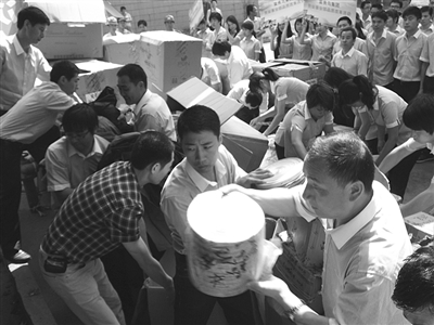 當日上午9時,銷毀行動開始,該公司近百名員工和數十家媒體記者共同見證了全過程。記者趕到現場看到,工人們正忙著將一箱箱打包好的瑕疵服裝搬下貨車,每個包裝箱上都貼有“經自查,不合格,同意報廢”字條,不一會兒就堆得像座小山。