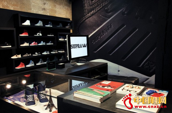 【中國鞋網-品牌動態】成功打造自身品牌并順利展店成功的Supra,位于紐約心臟地帶活動區的直營店大獲成功,趁勝追擊以巴黎為第一個歐洲據點分店。同樣開在巴黎黃金地區的Supra分店。在裝潢上采用與紐約本店一貫的暗黑色系的櫥窗,與實木設計的陳列擺設。并搭配鏡面與涂鴉設計的墻面,與低調奢華的巴黎街頭風格大相徑庭。