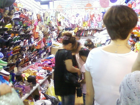 購(gòu)買(mǎi)雨鞋塑料涼鞋的市民在店內(nèi)試鞋