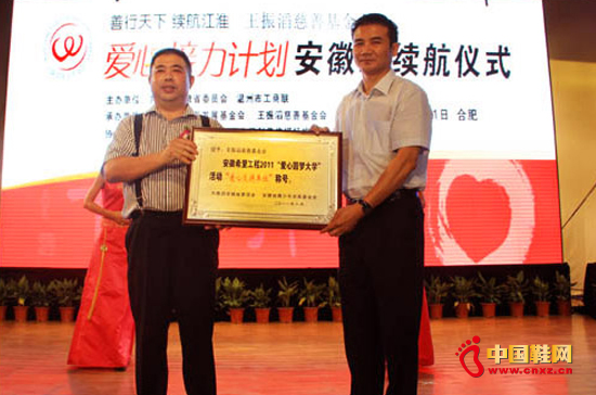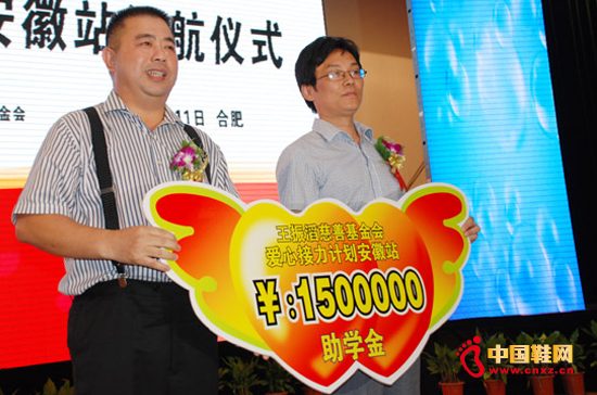 【中國鞋網-品牌動態】“紅色助學,愛傳江淮。今年是王振滔慈善基金會成立5周年,又喜逢建黨90周年,在這個特別的時期,我們要傳遞的,是一種愛的教育和心靈的洗禮!”8月11日下午,“善行天下 續航江淮”2011王振滔慈善基金會安徽站續航儀式在合肥財經職業學院舉行。該基金會創始人,浙江鞋業股份有限公司董事長王振滔來到活動現場并重申了此次助學行動的主題和初衷。