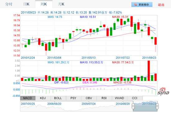 附:百麗2011上半年行情走勢圖-周K(截止9月23日)
