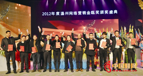 【中國鞋網(wǎng)-國內(nèi)動態(tài)】昨日下午,“2012年度溫州網(wǎng)絡(luò)營銷金甌獎頒獎盛典”在溫州廣電中心一樓演播廳舉行,百余位來自各行業(yè)領(lǐng)域的企業(yè)代表聚首頒獎盛典,共取網(wǎng)絡(luò)營銷“真經(jīng)”。