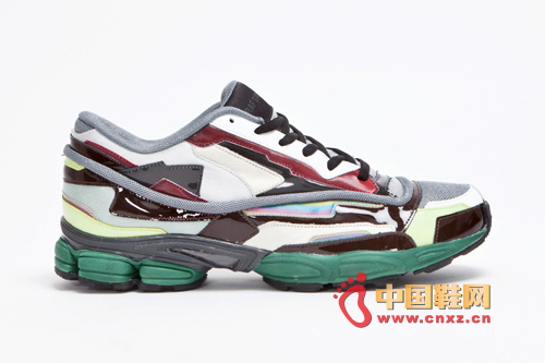 【中國(guó)鞋網(wǎng)-時(shí)新裝備】煣合運(yùn)動(dòng)元素的 Hi-End 時(shí)裝是近年大熱的時(shí)尚風(fēng)格,有著運(yùn)動(dòng)服的實(shí)用性設(shè)計(jì)之余,而且又是一件時(shí)尚單品,一舉兩得,所以比利時(shí)時(shí)裝設(shè)計(jì)師 Raf Simons 重返自己一手成立的品牌之后,將與運(yùn)動(dòng)品牌 adidas 進(jìn)行合作,打造出一系列運(yùn)動(dòng)鞋。而在那重要的聯(lián)乘合作推出前,Raf Simons 也推出了采用網(wǎng)料和皮革組成的鞋身結(jié)構(gòu) Panelled Running 鞋款,在啡色,白色和綠色的點(diǎn)綴下,還有鞋身亮麗的漆面效果,呈現(xiàn)出厚實(shí)而富有未來(lái)感的外型。