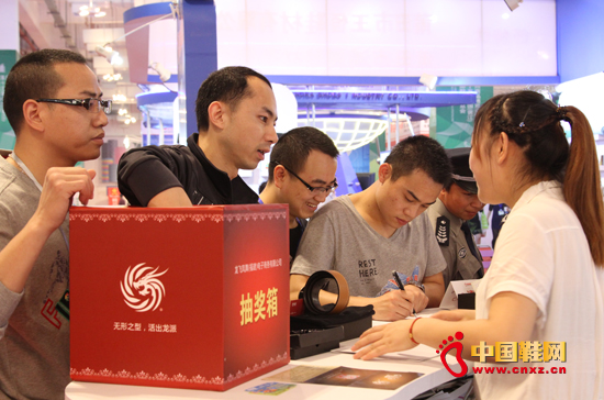 本屆鞋博會還吸引了眾多新品牌前來參展,位于三樓展區(qū)的龍鳳商城就是其中一個新品牌。走近龍鳳商城展館,一個巨大潔白的羽翼造型設計引人注目,許多專業(yè)觀眾前來參觀,,大家耐心地聽著工作人員的介紹,與此同時龍鳳商城展會舉辦的抽獎互動活動也如火如荼地進行著,一旁等待抽獎的觀眾躍躍欲試,享受著來自品牌帶來的好運氣。