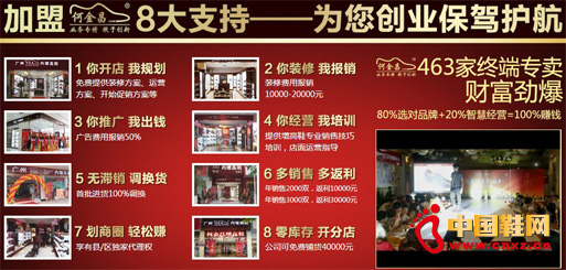 內(nèi)增高鞋有著十分廣闊的市場(chǎng)空間,對(duì)于何金昌鞋業(yè)的加盟商們來說更是一個(gè)難得的商機(jī)。相信在何金昌鞋業(yè)總部的大力幫助之下,即使是出入商界沒有太過人生閱歷的年輕創(chuàng)業(yè)者也可以成就一番屬于自己的事業(yè),事實(shí)現(xiàn)自己的財(cái)富夢(mèng)想。(轉(zhuǎn)載請(qǐng)注明來源中國(guó)鞋網(wǎng) 原創(chuàng),本網(wǎng)保留追究盜用者版權(quán)責(zé)任的權(quán)利。)