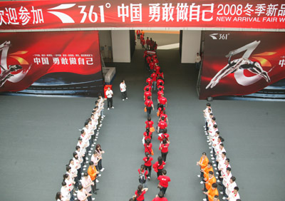 伴隨08奧運的臨近,奧運熱情和愛國熱情逐漸升溫,尤其是3月東西方文化碰撞以及奧運圣火全球傳遞之旅,全球華人對“中國”二字有了新的理解,361°08戰略的高度和厚度日益凸現。據《羊城晚報》報道,在5月7日的奧運圣火廣州傳遞活動中,多條“中國 勇敢做自己”橫幅出現在人群中,引發大眾共鳴。