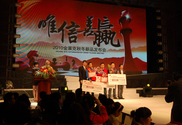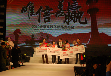 中國鞋網03月24日訊,2010年3月16日,2010年金萊克秋冬新品發布會在泉州奧林匹克花園拉開帷幕,共有1200多名來自全國各地的金萊克經銷商參加了此次大會。大會上金萊克總公司表彰了在2009年度表現優秀的分公司、代理商和銷售先進店鋪,獎金總額高達五百多萬人民幣,令人振奮的大獎給全國銷售精英們帶來了極大的肯定和鼓勵。