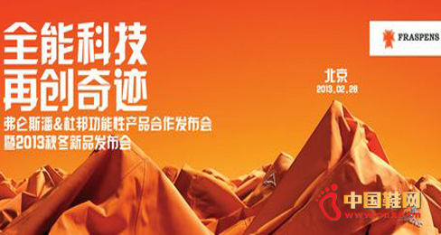 【中國鞋網-品牌動態】2013年02月27日-03月02日,“全能科技,再創奇跡-弗侖斯潘&杜邦功能性產品合作發布會暨2013秋冬新品發布會”在北京凱迪克格蘭云天大酒店舉辦。